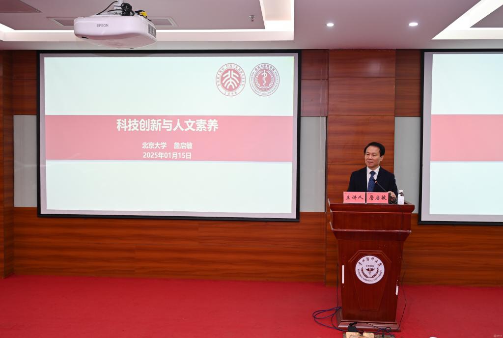 1月15日,贵州医科大学第六期“院士大讲堂”在北京路校区临床技能中心开讲。中国工程院院士,北京大学校务委员会副主任、北京大学国际癌症研究院院长、苏州大学苏州医学院院长詹启敏作学术报告。校党委副书记、校长罗鹏,校党委副书记汤磊,副校长曾柱,附属医院党委书记李海洋、院长左石出席会议。相关职能部门,附属医院及各学院、重点实验室、工程中心主要负责人、教师代表和学生代表参加会议。