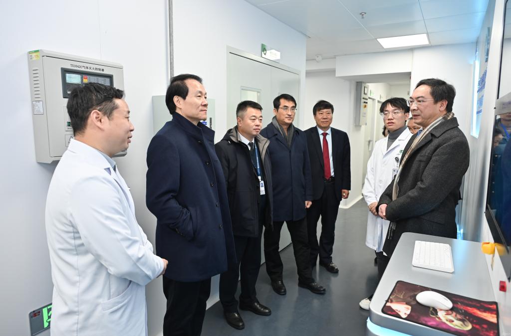报告会后,詹启敏院士一行与我校党政领导、青年教师、学生代表亲切座谈,详细了解学校发展历程、医学人才培养、科学研究与成果转化和服务地方经济社会发展情况,并对学校的办学历史,办学条件及取得的办学成就给予了高度的肯定。詹启敏院士一行还参观了贵州省精准医学研究院,贵州省医学测序中心、生物样本库。