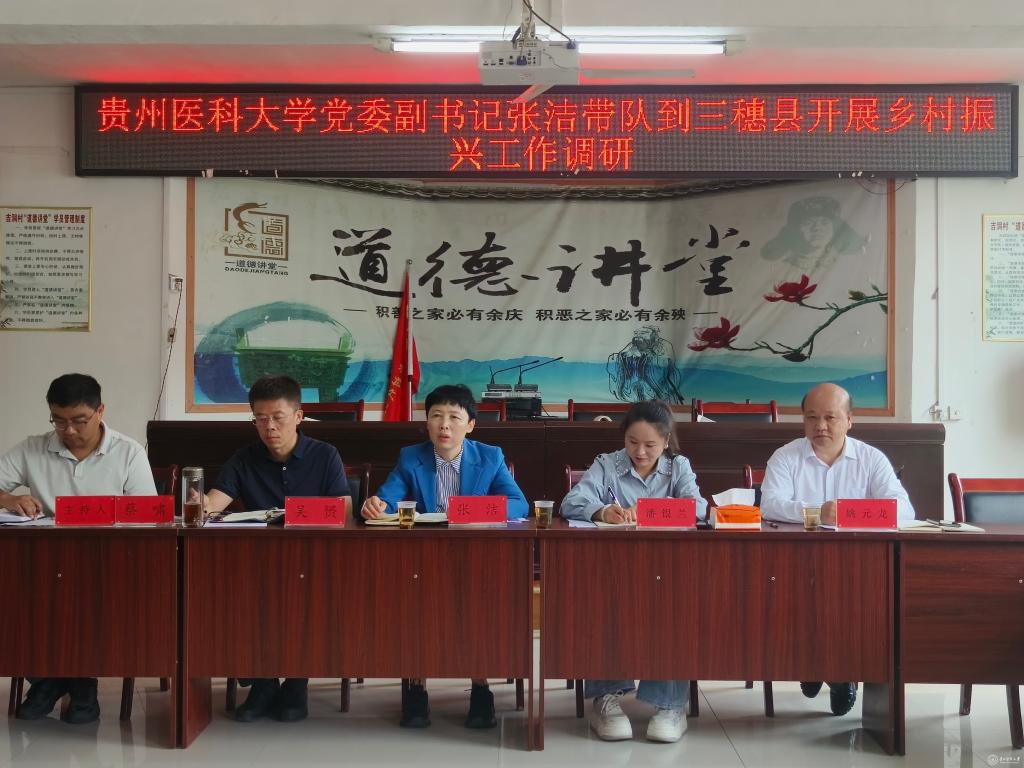 近日,校党委副书记张洁到三穗县吉洞村开展乡村振兴工作调研。武笔街道党工委副书记潘银兰,吉洞村党支部书记、村委会主任姚元龙,校党委组织部副部长吴赟及我校驻村工作队全体人员参加。会议由驻村工作队总队长兼校本部队长蔡啸主持。