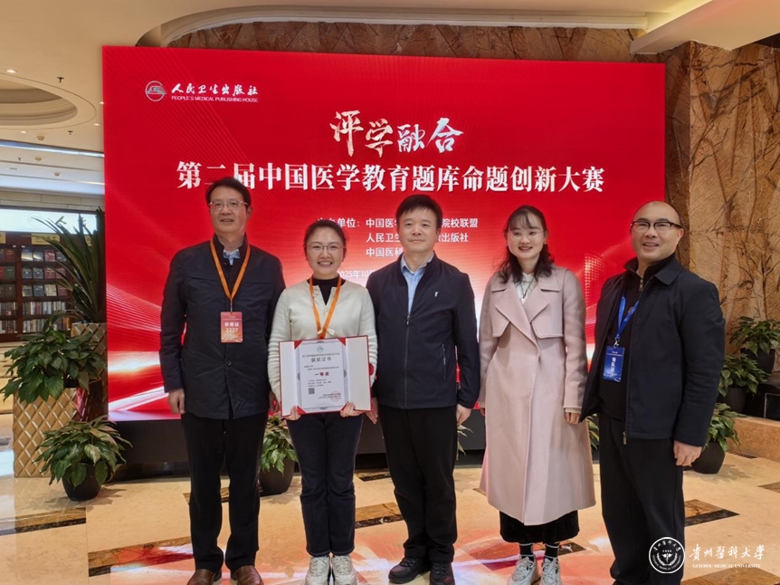 10月20日,我校在第二届中国医学教育题库命题创新大赛中喜获一等奖。本次大赛由中国医学教育题库院校联盟与人民卫生电子音像出版社联合主办,有来自全国医学院校的100支队伍参与角逐,旨在推动医学教育评价改革,提升教师命题能力,促进医学人才培养质量。