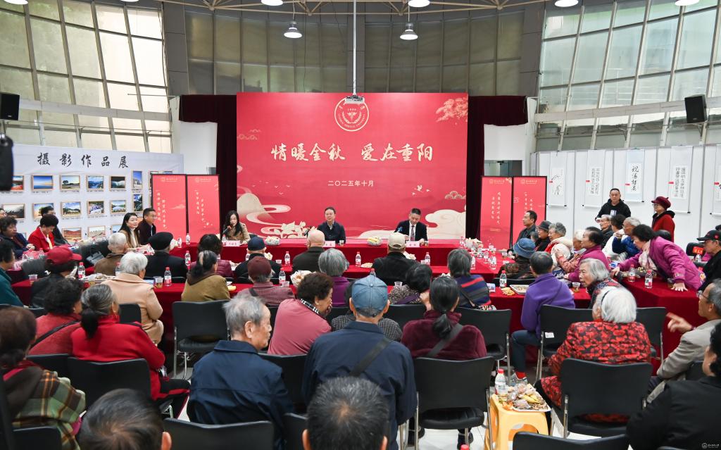 10 月 29 日,我校在北京路校区圆厅举办重阳节座谈会,向离退休老同志、老领导致以节日的问候与祝福。校党委书记汤磊出席并致辞,校党委副书记、校长俞松通报近期学校工作情况,校党委常委、副校长齐晓岚主持会议。退休老领导代表、离退休老同志代表,年满70、80、90整岁的老同志代表及相关部门负责人参加会议。