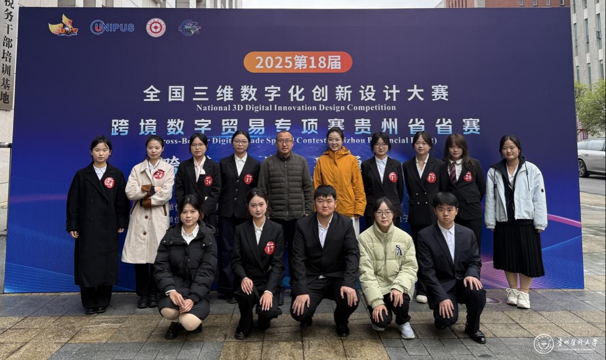 近日,第18届全国三维数字化创新设计大赛跨境数字贸易专项赛贵州省省赛圆满落幕。我校学子凭借扎实的专业素养、创新的设计理念与出色的现场表现,在激烈竞争中脱颖而出,斩获一等奖1项、二等奖2项、三等奖3项和优秀奖6项。