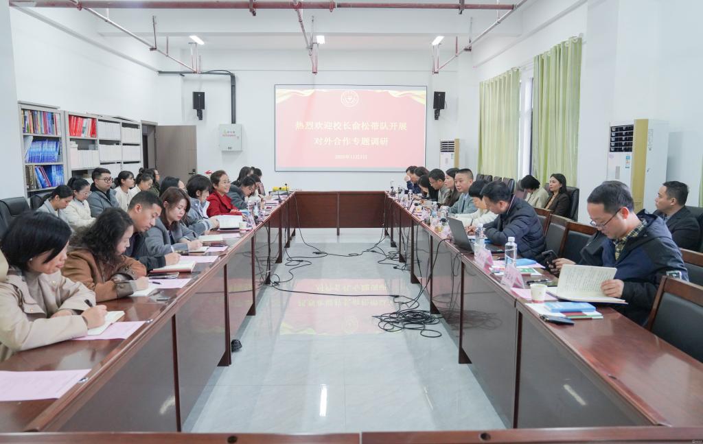 11月3日,校党委副书记、校长俞松,校党委副书记张洁带队开展对外合作专题调研,调研座谈会在海外教育学院会议室召开。党政办公室、人事处、学生处、教务处、计划财务处、后勤管理处、保卫处、研究生院等相关部门负责人以及对外合作交流处(港澳台事务办公室)、海外教育学院教职工参加。