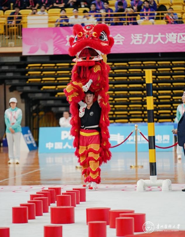 11月11日至13日,第十五届全国运动会群众展演舞龙舞狮项目决赛在佛山岭南明珠体育馆隆重举行。本届赛事障碍南狮项目汇聚全国11支顶尖队伍同台竞技。在高手云集的巅峰对决中,我校南狮队奋勇拼搏、力战群雄,最终斩获障碍南狮项目三等奖,在全国舞台上续写贵州体育荣光,彰显贵医青年学子的昂扬风采。