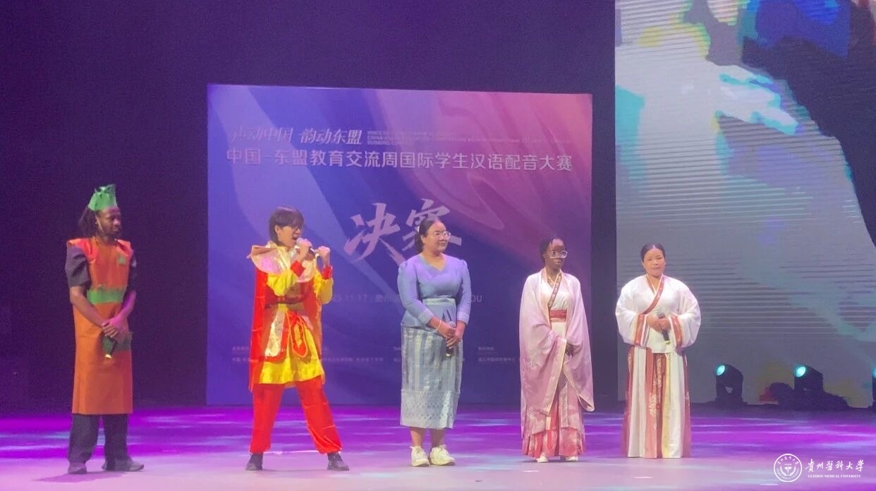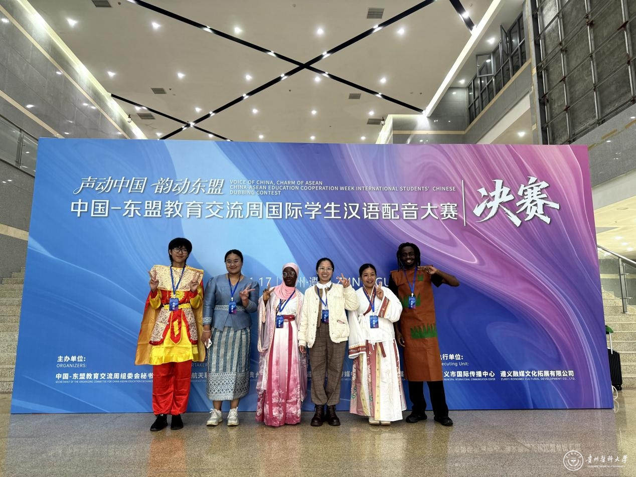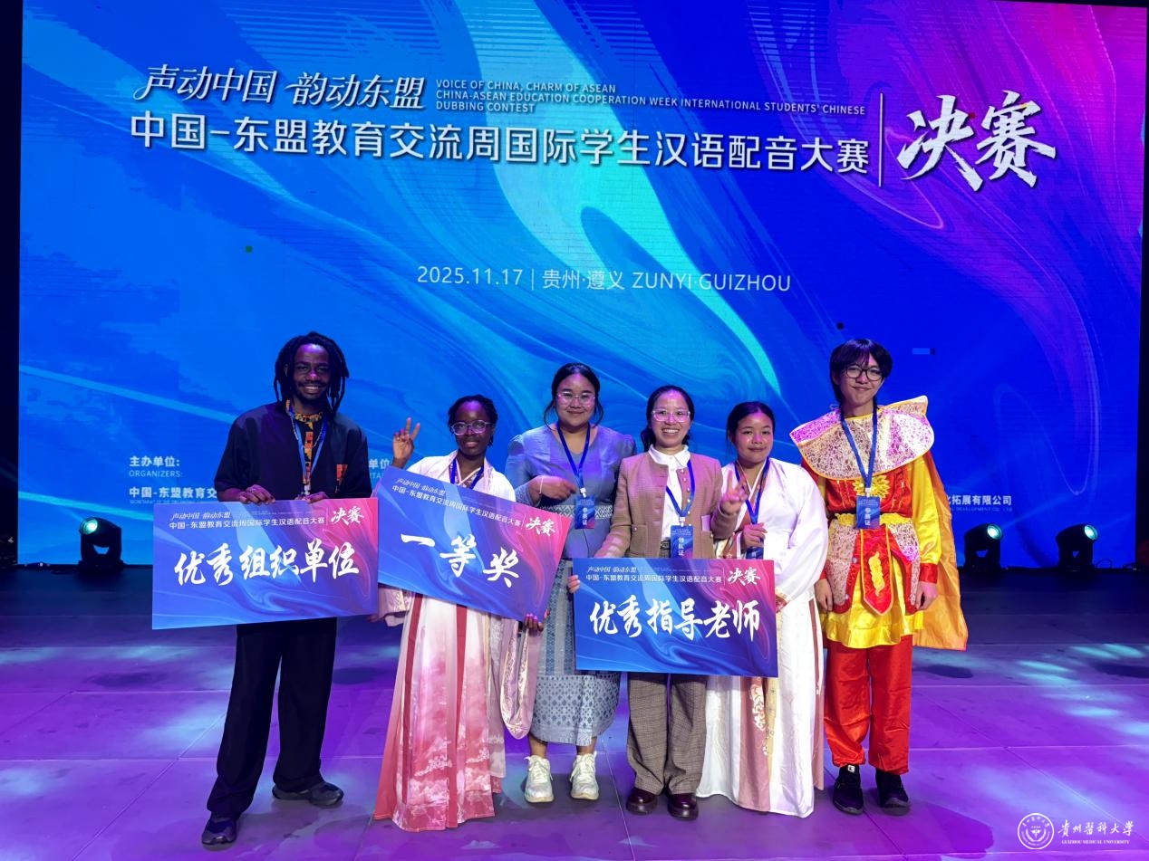 11月17日,2025中国-东盟教育交流周“声动中国 韵传东盟”国际学生汉语配音大赛在贵州省遵义融媒传媒集团一号演播大厅圆满落幕。我校留学生团队一举夺得大赛一等奖。