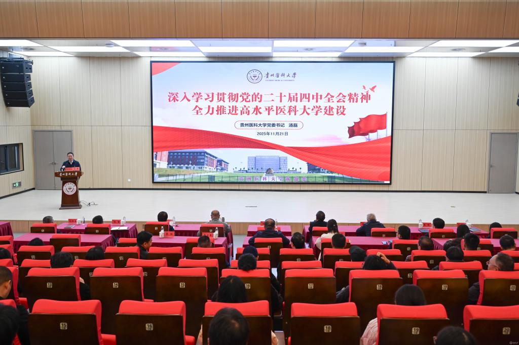 于浩在主持时指出,全校各级党组织要将全会精神与习近平总书记在贵州考察时的重要讲话精神紧密结合,以高度的政治自觉抓好落实落地。以此次宣讲为契机,持续开展多形式、分层次的学习宣讲活动,推动理论武装入脑入心;坚持党建引领一体推进教育科技人才事业发展,在融合提质上实现新突破,把全会精神作为破解改革发展难题的“金钥匙”,推动学校高质量发展,奋力开创高水平医科大学建设新局面。