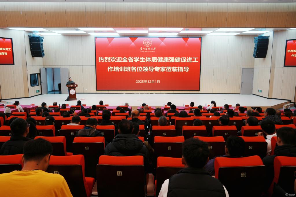 12月1日,为深入学习贯彻党的二十届四中全会精神,扎实推进教育强国、体育强国建设,切实提升全省学生体质健康水平,全省学生体质强健促进工作培训观摩活动在我校举行。省教育厅体卫艺处处长曾洪波,校党委常委、副校长曾柱出席,校长办公室主任龚敏、党委学生工作部(学生处、武装部)部长王韬、校团委书记王妤煜以及各本科院校体育学院院长,各高职院校分管校领导及体育系(基础部)业务负责人等参加。我校运动与健康学院党委书记姚思勤主持。