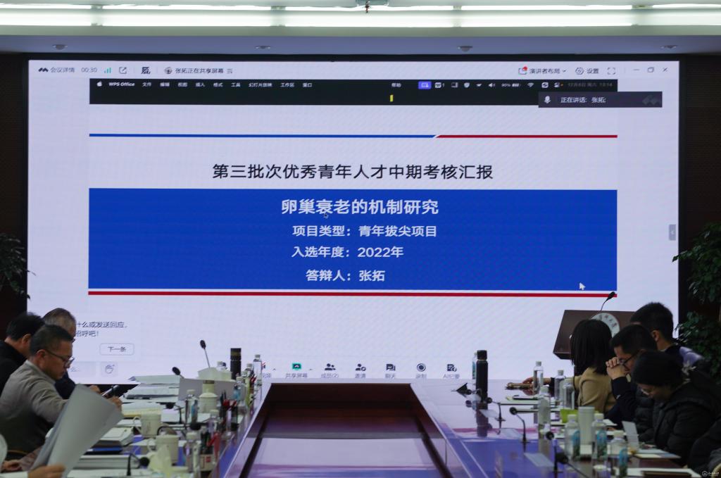 第一批次期满考核与第三批次中期考核的青年人才依次进行汇报,围绕研究进展、成果产出、团队建设与发展规划等方面展开详细阐述。