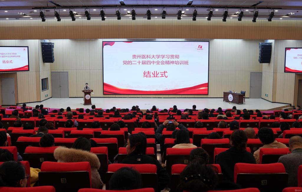 1月9日,为期3天的贵州医科大学学习贯彻党的二十届四中全会精神专题培训班顺利结束。校党委书记、校党委党校校长,贵州省天然产物研究中心党委书记汤磊出席结业式并讲话,党委副书记、校长、贵州省天然产物研究中心主任俞松,党委副书记张洁,校党委常委,党委宣传部(精神文明办公室)部长(主任)、党委统战部部长陈颖,校党委常委,党委组织部部长、党校常务副校长李红出席结业式。