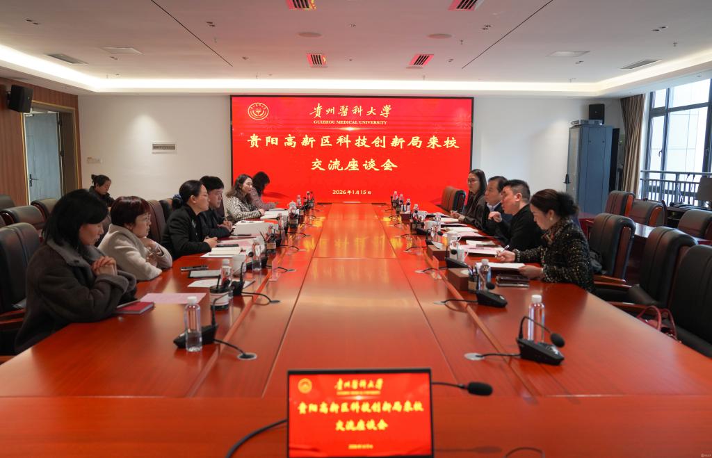1月15日,贵阳高新区科技创新局副局长李敏、黄果树药业(贵州)有限公司董事长石泽稳一行来校交流,并在云漫湖校区知雨楼501会议室举行座谈会。校党委常委、副校长洪峰主持座谈会。科学技术处、科技创新与产业发展处、中药功效成分发掘与利用全国重点实验室协同创新中心、公共卫生与健康学院、毒性检测中心等相关负责人参加座谈。