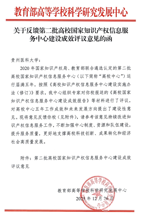 评估专家组一致认为,中心服务成效显著,基础服务扎实高效,围绕医学特色学科,提供专利查新、检索分析、布局预警等服务。重点服务特色鲜明,聚焦核心技术突破,开展高价值专利培育、科技成果产业化等服务,为核心技术创新提供支撑。校外服务辐射广泛,扶持乡村振兴,助力区域重点产业发展。