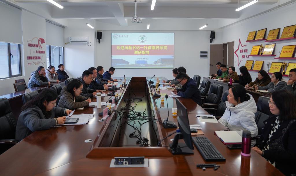 3月3日,校党委书记汤磊到药学院调研,深入了解药学院学系改革及药学精英人才培养等工作。党政办公室、人事处、教务处、招生就业处、研究生院等职能部门负责人,药学院领导班子成员、副科级以上干部及新聘任的学系(中心)负责人参加。