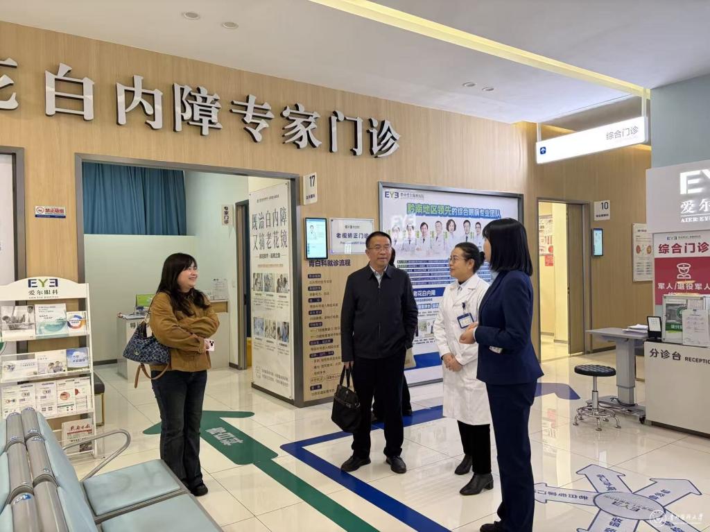 3月23日,副校长禹文峰率队赴黔南爱尔眼科医院开展走访调研。临床医学院党委副书记(正处级)桂晓玲、副院长穆茂、眼科学教研室欧尚坤、辅导员吴云燕及冉启毫参加调研。黔南爱尔眼科医院院长郑岚、人力资源负责人龙绍丽热情接待并陪同调研。