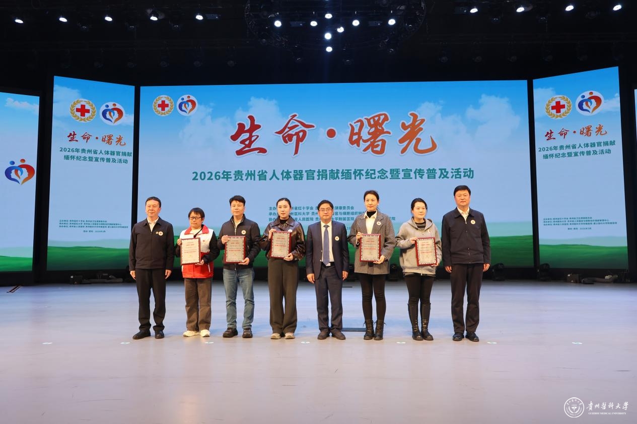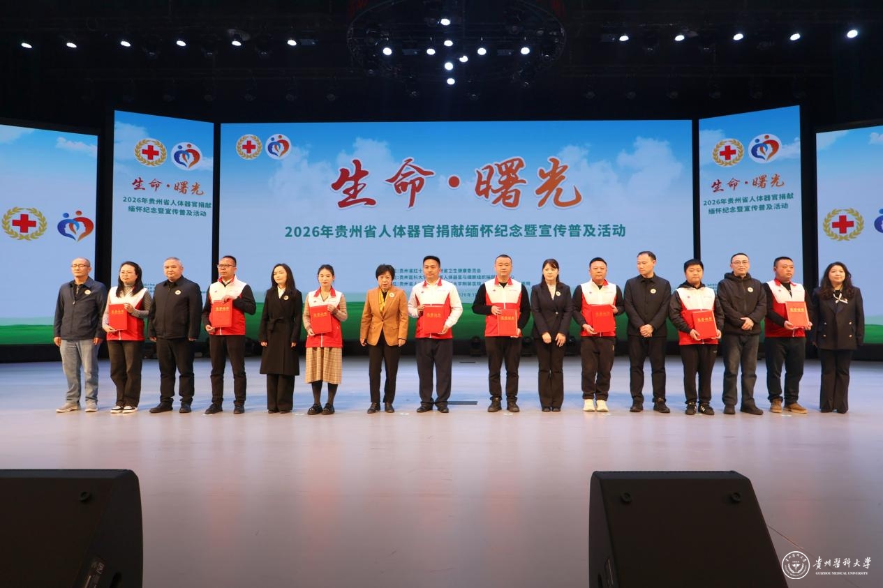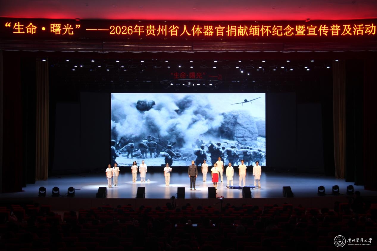 近日,由贵州省红十字会、贵州省卫生健康委员会主办,贵州医科大学、贵州省人体器官与细胞组织捐献管理中心承办,贵州省人民医院、贵州医科大学附属医院、遵义医科大学附属医院协办的“生命·曙光”——2026年贵州省人体器官捐献缅怀纪念暨宣传普及活动在我校云漫湖校区大礼堂举行。
