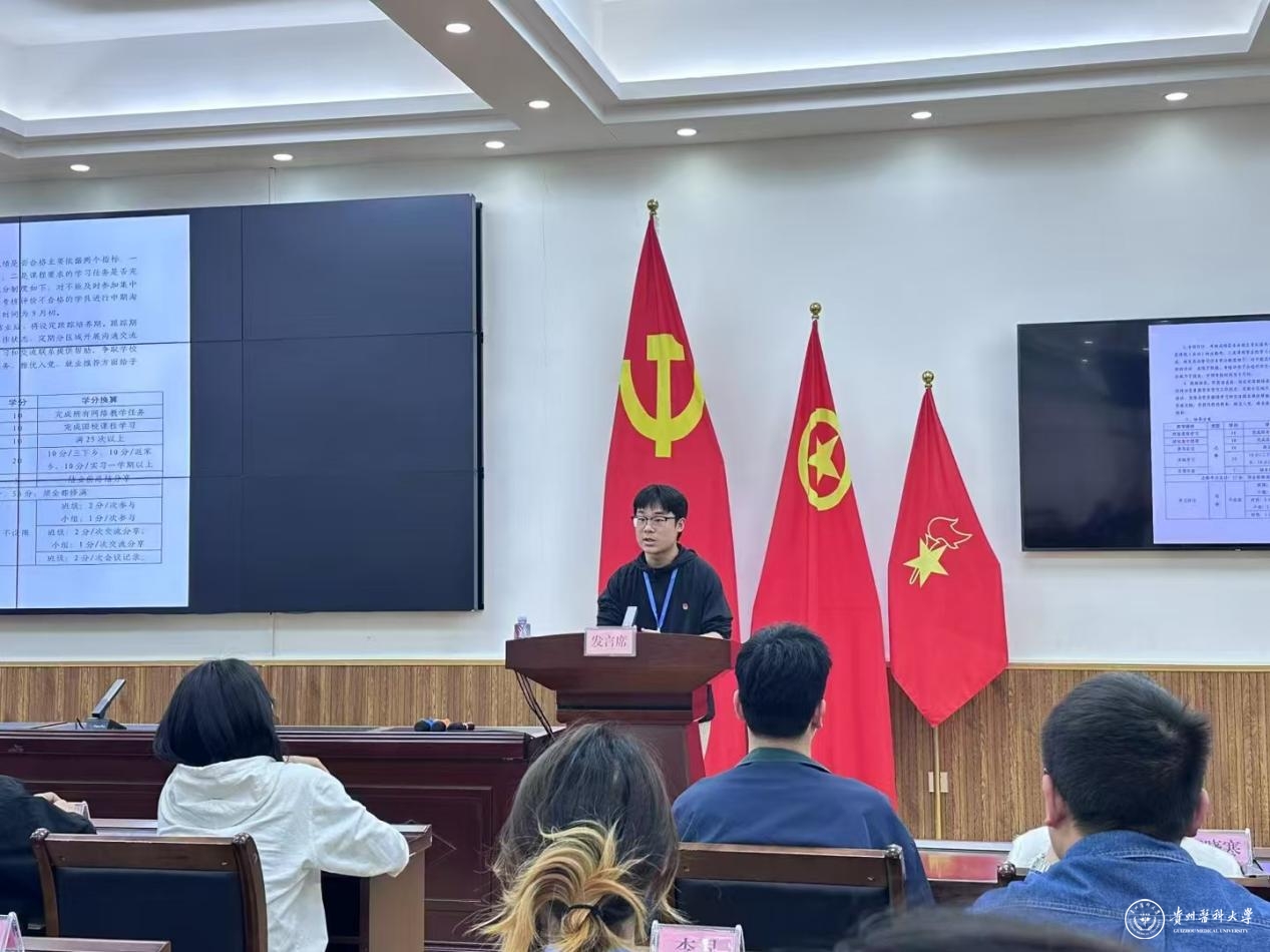 李阳鑫,男,汉族,共青团员,医学人文学院2023级法学专业学生。在校期间,他积极参与团学工作,履职尽责,目前担任贵州医科大学团委兼职副书记(学生)、学校青马宣讲团副团长、贵州省学联新媒体运营中心工作人员等职务,在服务同学、传递青春力量中发挥了积极作用。同时,他兼顾学业与能力提升,在各类竞赛和实践活动中屡获佳绩,先后斩获2025年全国大学生生命科学竞赛一等奖、中国国际大学生创新大赛(2025)全国总决赛银奖、贵州省2025年团支部“微团课”比赛一等奖、第十五届“创新、创意及创业”挑战赛省赛一等奖、第十九届“挑战杯”省赛二等奖;获评2025年贵州省暑期“三下乡”社会实践活动“优秀实践个人”、入党积极分子培训班“优秀学员”、校级“优秀学生干部”等多项荣誉称号。