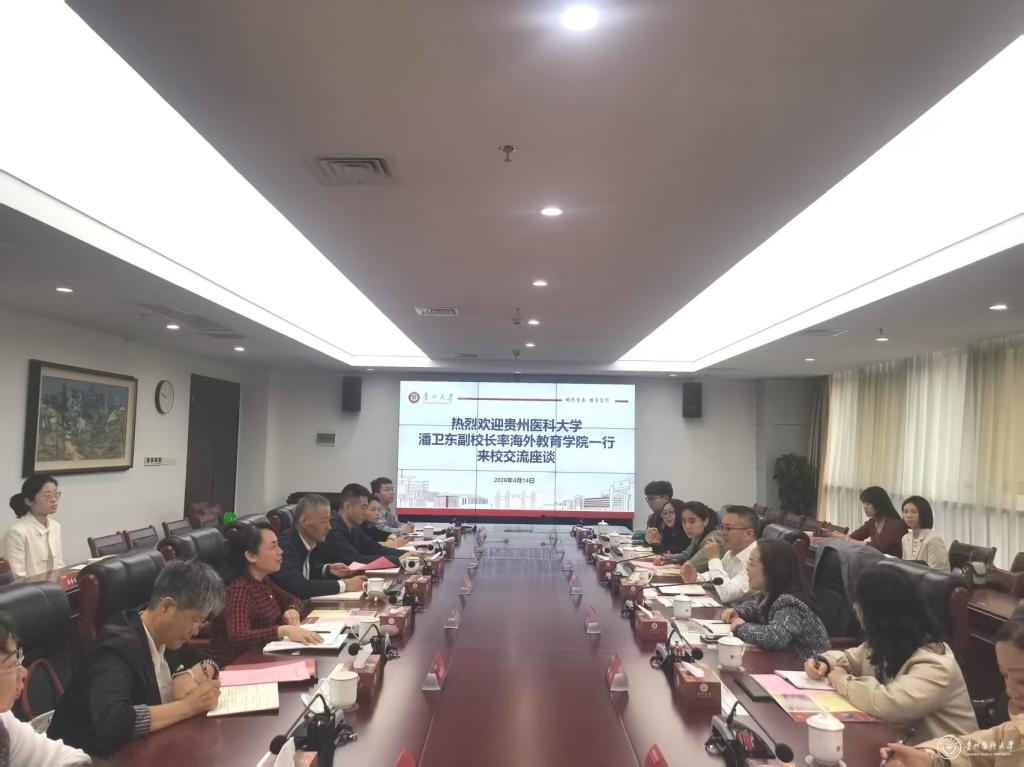 4月14日,副校长潘卫东率我校海外教育学院教师到贵州大学国际教育学院开展学习交流。贵州大学党委常委、副校长王锦荣出席座谈会,贵州大学国际交流与合作处、国际教育学院负责人及教师代表参加,贵州大学国际教育学院院长宁梅主持。