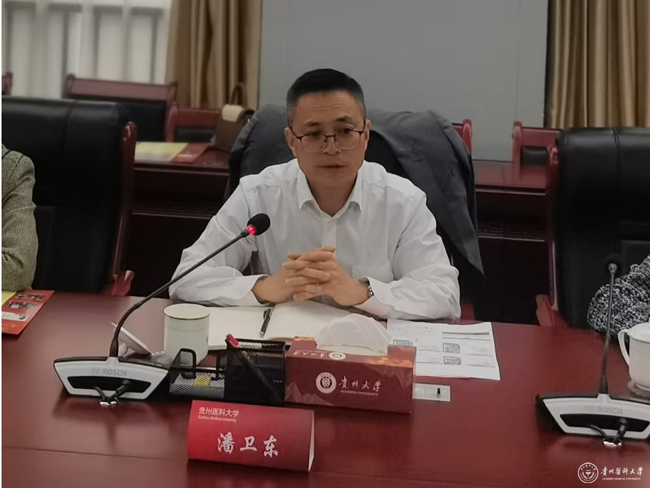 潘卫东对贵州大学给予我校的大力支持表示衷心感谢。他指出,当前我校正处于高质量发展的关键时期,诚挚希望贵州大学能为我校来华留学教育工作问诊把脉、传经送宝,帮助我们找准问题、厘清思路,为后续工作开展提供重要指引。潘卫东表示,我们将以此次考察交流为契机,虚心听取、全面梳理各科室提出的宝贵意见和建议,以务实高效的行动确保相关工作的落实与推进,促进我校来华留学教育的内涵式发展。