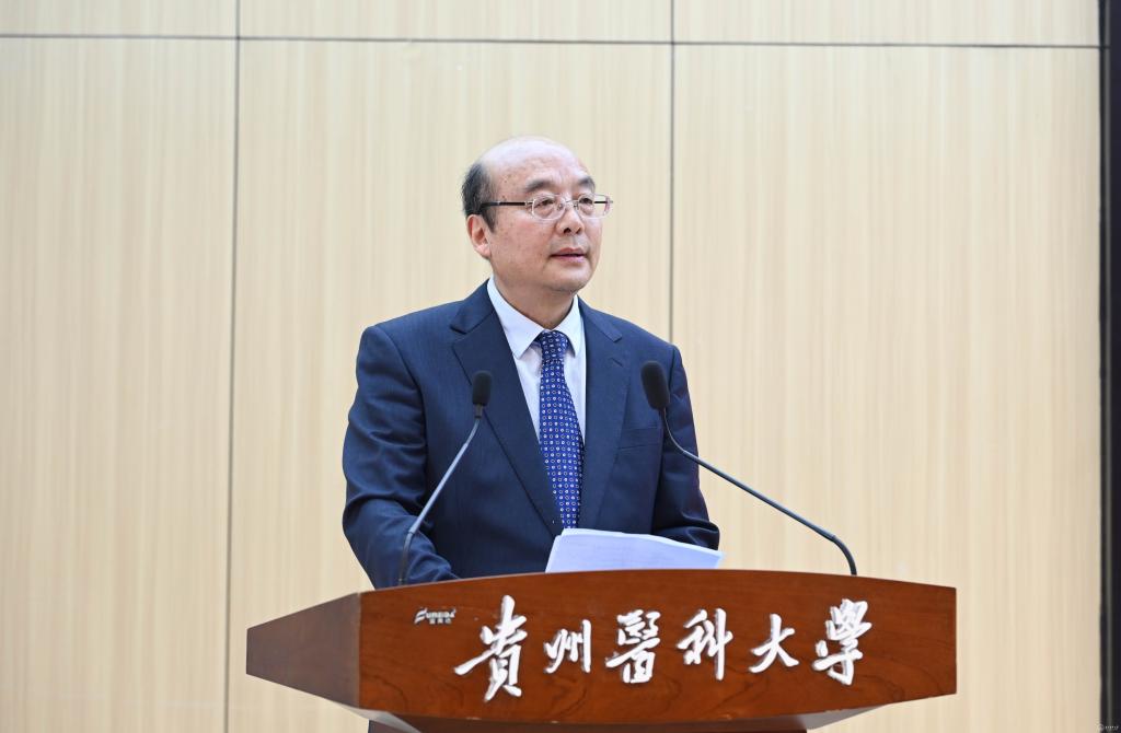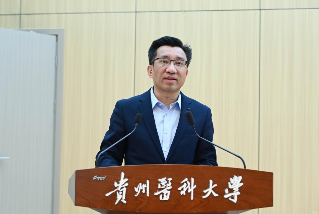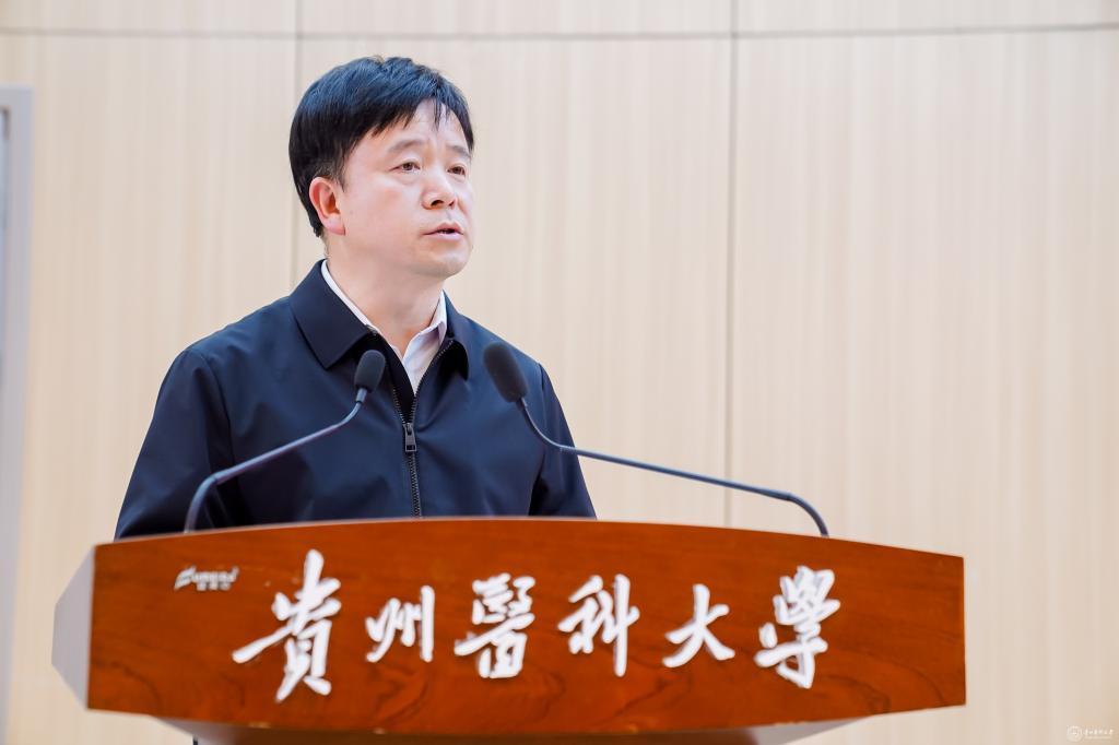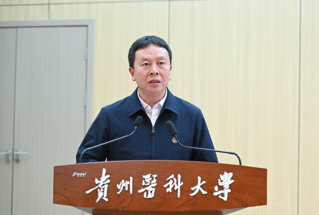 4月17日,第六届贵州省高校教师教学创新大赛在我校云漫湖校区道德讲堂正式开幕。本次大赛由贵州省教育厅指导、贵州省高等教育学会主办、贵州医科大学承办、贵州超星信息技术有限公司协办。中国高等教育学会副会长、中国高等教育培训中心主任姜恩来线上出席,贵州省教育厅党组成员、副厅长、省委教育工委委员白震,贵州省高等教育学会理事长温小军,校党委书记汤磊,校党委副书记、校长俞松、校党委常委、副校长洪峰等领导出席,全省本科高校分管校领导、教学管理负责人、领队及入围现场赛的教师(团队)参加。