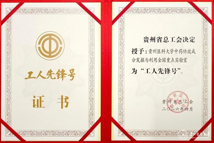 此次荣获“贵州省工人先锋号”,既是对我校中药功效成分发掘与利用全国重点实验室长期以来扎根科研一线、勇攀创新高峰、服务地方经济社会发展的高度肯定,也必将激励全体科研人员进一步凝心聚力、实干争先。未来,实验室将紧扣中医药传承创新发展国家战略,持续夯实原始创新能力,加速推动科研成果转化,主动融入学校学科建设整体布局,全力助推学校内涵式发展和“双一流”建设,为贵州医药产业提质升级注入持久动能,为健康中国建设贡献贵医智慧与力量。