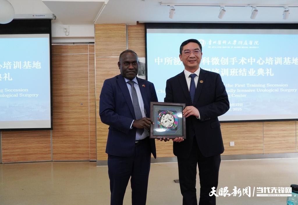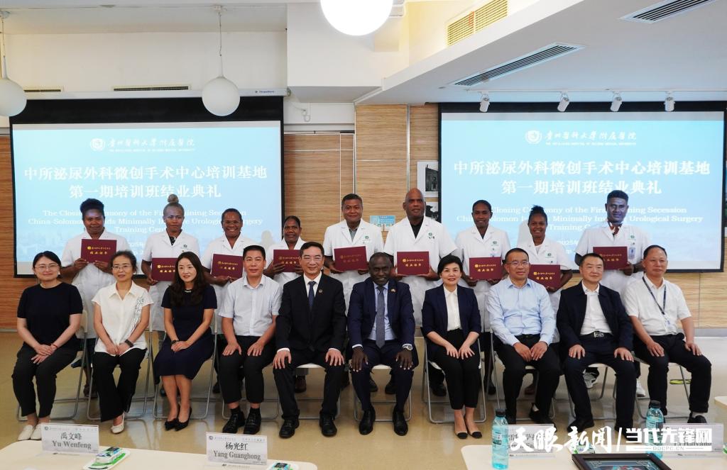 9月22日,贵州医科大学附属医院临床研究中心洋溢着喜悦与收获的氛围。中国—所罗门群岛泌尿外科微创手术中心培训基地首期培训班结业典礼在此举行,来自所罗门群岛国家转诊医院的9名医务人员经过为期三个月的系统培训,圆满完成学习任务,顺利结业。这一重要时刻不仅标志着中所两国医疗卫生合作取得重要阶段性成果,也成为两国人民深厚友谊的生动见证。