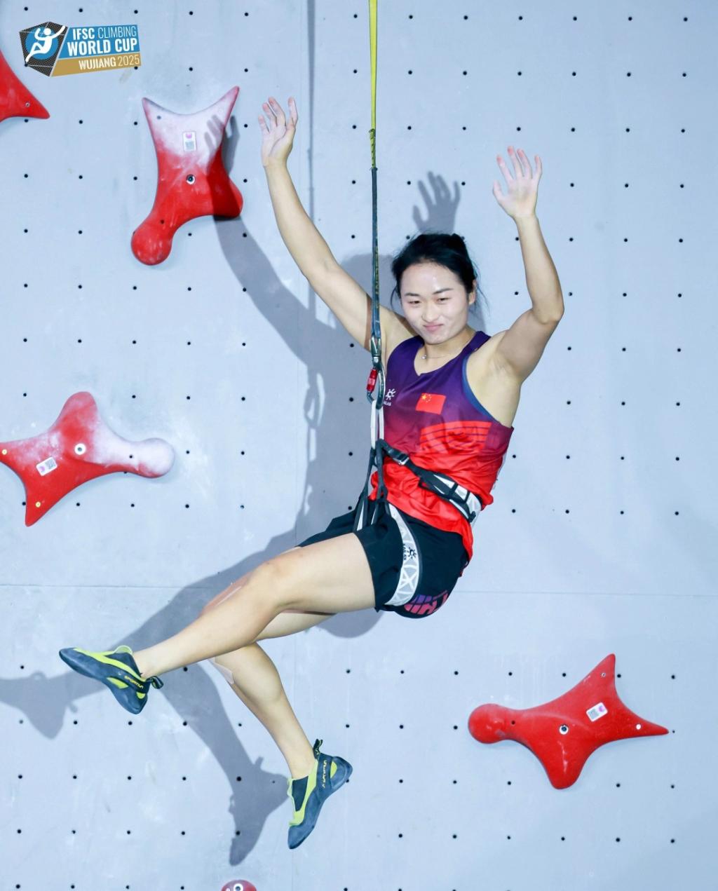 将时间回拨,2024年7月,在国际攀联世界杯法国站,张少琴以6.58秒的个人最好成绩获得女子速度攀岩冠军;2023年第19届杭州亚运会攀岩女子团体速度接力赛决赛,张少琴和队友最终以20.925秒的成绩夺得金牌。目前,张少琴取得了包括2枚世界杯金牌、1枚世界杯铜牌、亚运会金牌、世运会银牌在内的优异成绩。