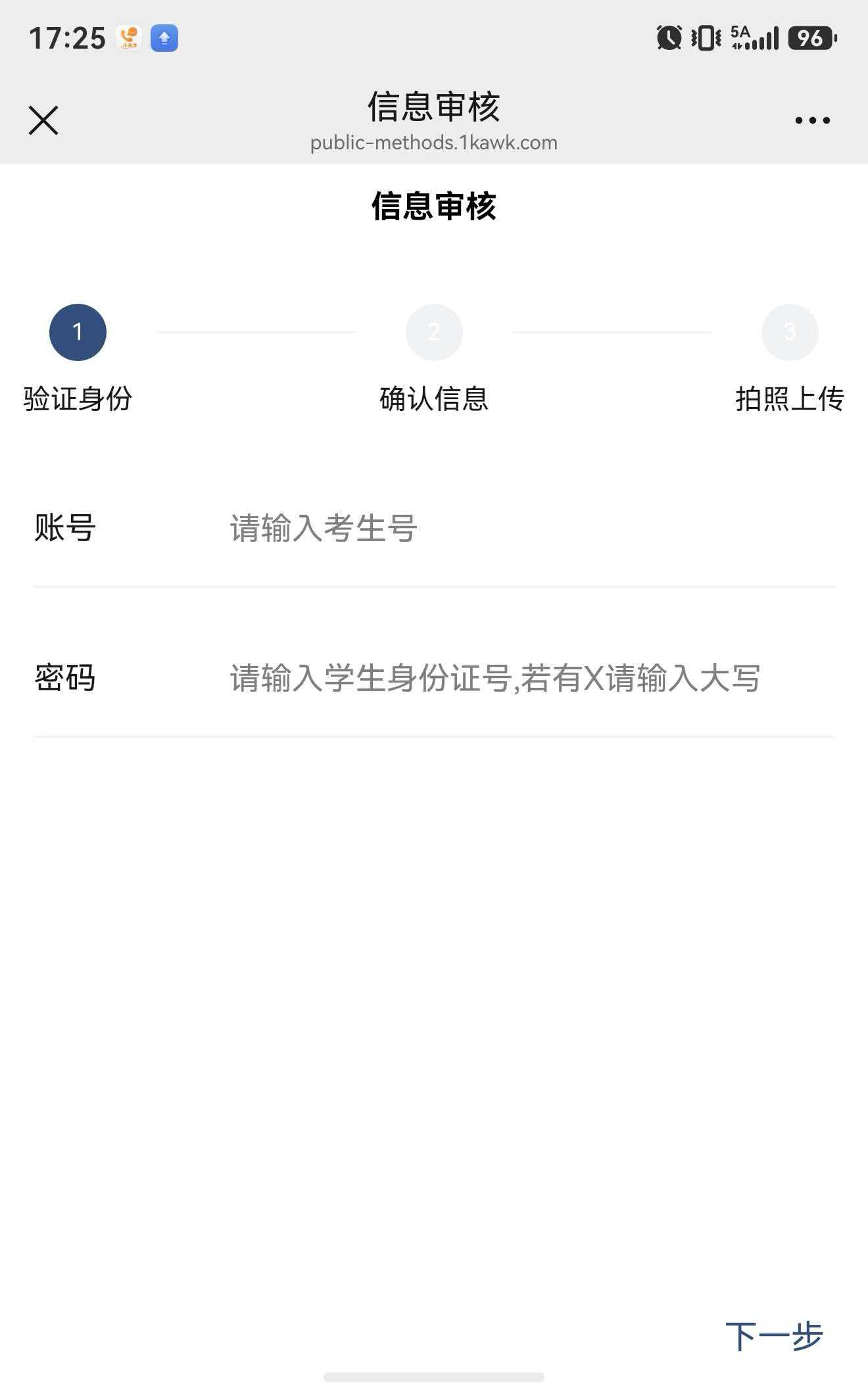 3、进入以下页面,输入考生号、身份证号,点击下一步。