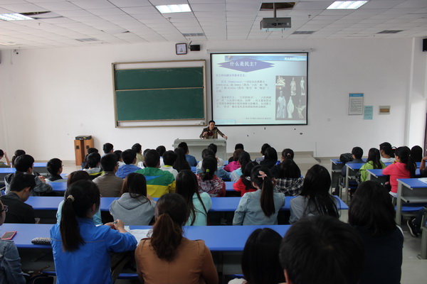 5月27日,在我校新校区1604教室举行“道德讲堂”第六讲。我校社科部教师蒋谨慎以“民主的过去、现在、未来”为题,为到场的150余名师生进行深入浅出的讲解。