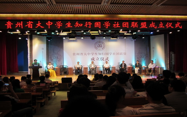 成立仪式由团省委副书记徐锡广主持。陈鸣明副省长代表省人民政府对贵州省大中学生知行国学社联盟的成立表示热烈的祝贺,并针对大学生学习、继承、传播和弘扬中国优秀传统文化提出三点希望,一是弘扬中华优秀传统文化要与理想信念相结合;二是弘扬中华优秀传统文化需要知行合一;三是弘扬中华优秀传统文化应注重创新,不断培育和践行社会主义核心价值观。