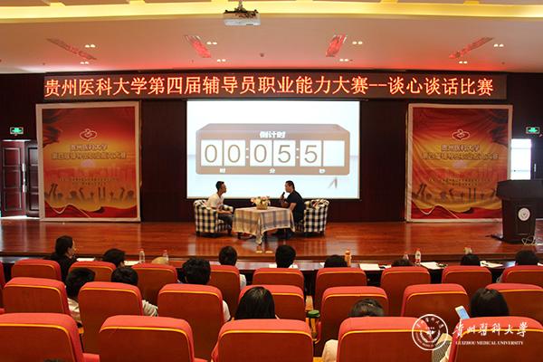 5月10日,我校第四届辅导员职业能力大赛谈心谈话环节比赛在花溪校区道德讲堂举行。学工部部(处)长赵平、副部(处)长李宗梅和9位学院分管学生工作的党委副书记参加活动并担任评委。学工部全体工作人员、辅导员及学生代表观摩大赛。