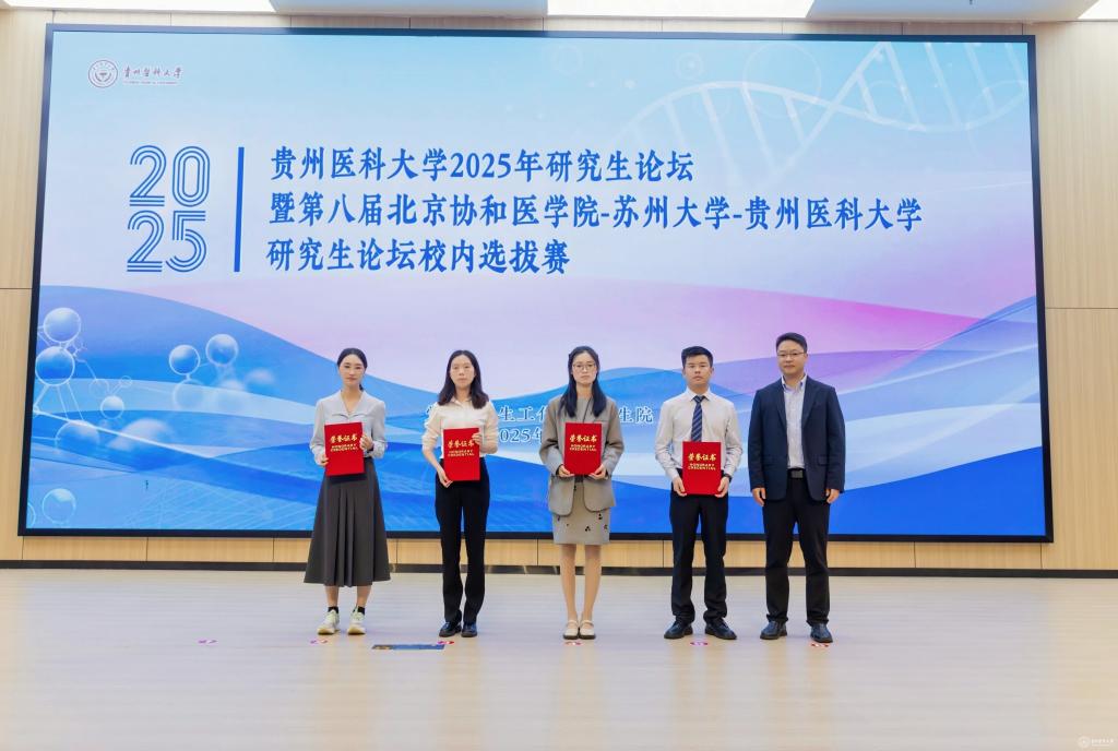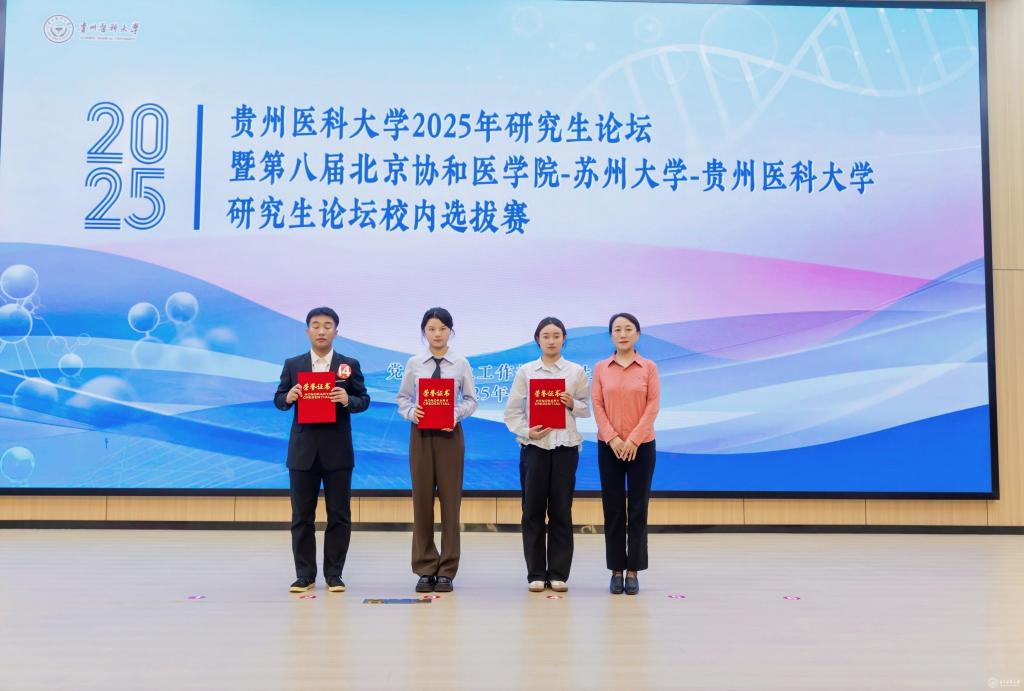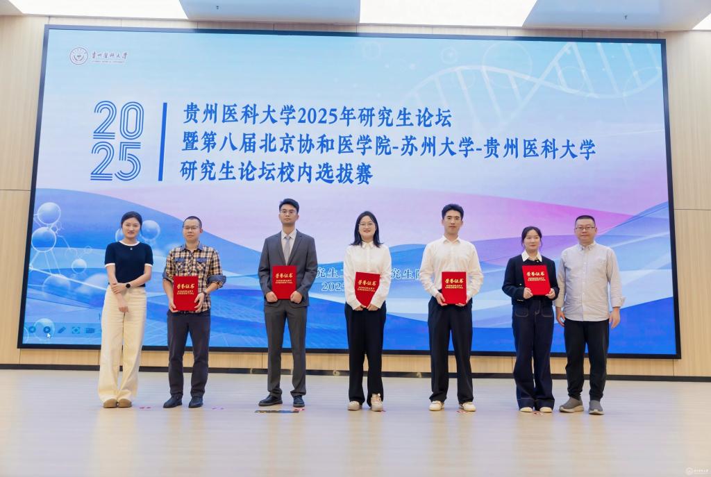 本次研究生论坛最终评选出一等奖1名,二等奖3名,三等奖4名,优秀奖6名。其中前8名研究生将代表我校参加10月18日由我校承办的第八届北京协和医学院-苏州大学-贵州医科大学研究生论坛。