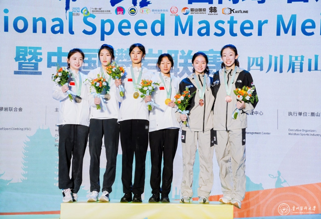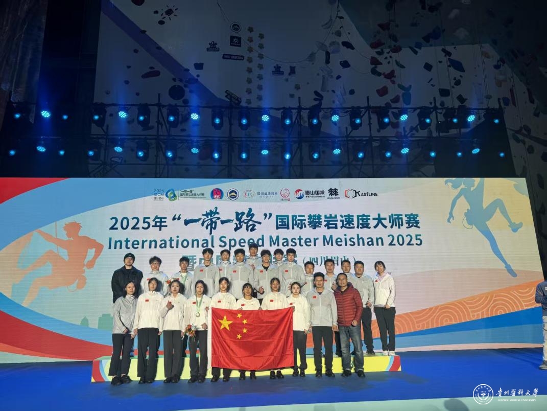 近日,在2025“一带一路”国际攀岩速度大师赛暨中国攀岩联赛(眉山站)中,我校运动与健康学院2025级运动训练专业学生零宝霖、范竞月、黄日明、赵子谦凭借出色的竞技状态和顽强的拼搏精神,在赛场上取得了优异成绩,充分展示了我校学子昂扬奋进的青春风采与竞技实力。