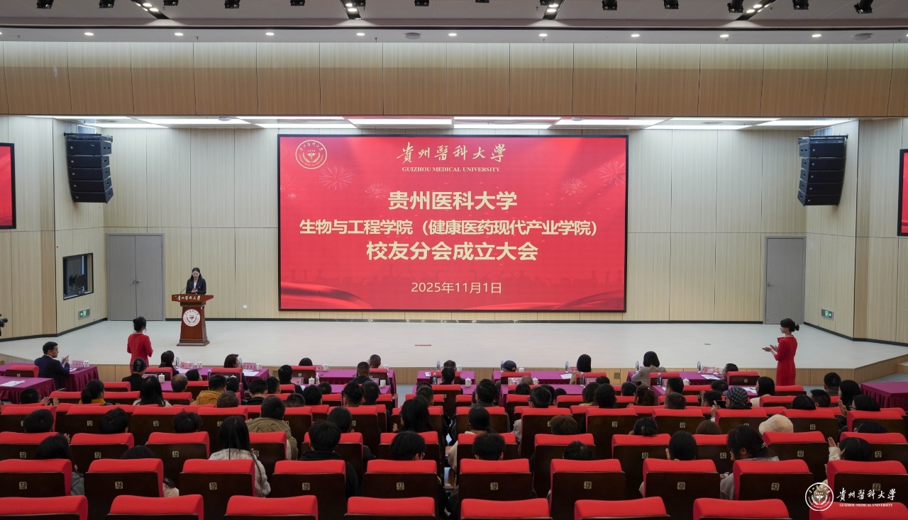 11月1日,贵州医科大学生物与工程学院(健康医药现代产业学院)校友分会(以下简称“生工校友分会”)成立大会在云漫湖校区举行。校党委常委、副校长曾柱,副校长潘卫东出席,对外合作交流处校友事务与基金发展科科长罗佳丽、生物与工程学院(健康医药现代产业学院)历任领导、校友代表、全院教职工及学生代表300余人参加。会议由学院党委副书记李宗梅主持。