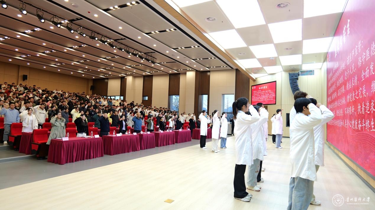 以生命赴使命的时代接力。活动在“强国有我・誓言与征程”的尾声中抵达高潮。《医路青春,使命在肩》的集体朗诵,激情澎湃,深情礼赞医者的博爱与担当。在领誓人的带领下,全场师生庄严地重温医学生誓词,“决心竭尽全力除人类之病痛,助健康之完美……”的誓言响彻会场,无数年轻的面庞上闪耀着坚定的光芒,这一刻,青春的理想与时代的召唤紧密相连。