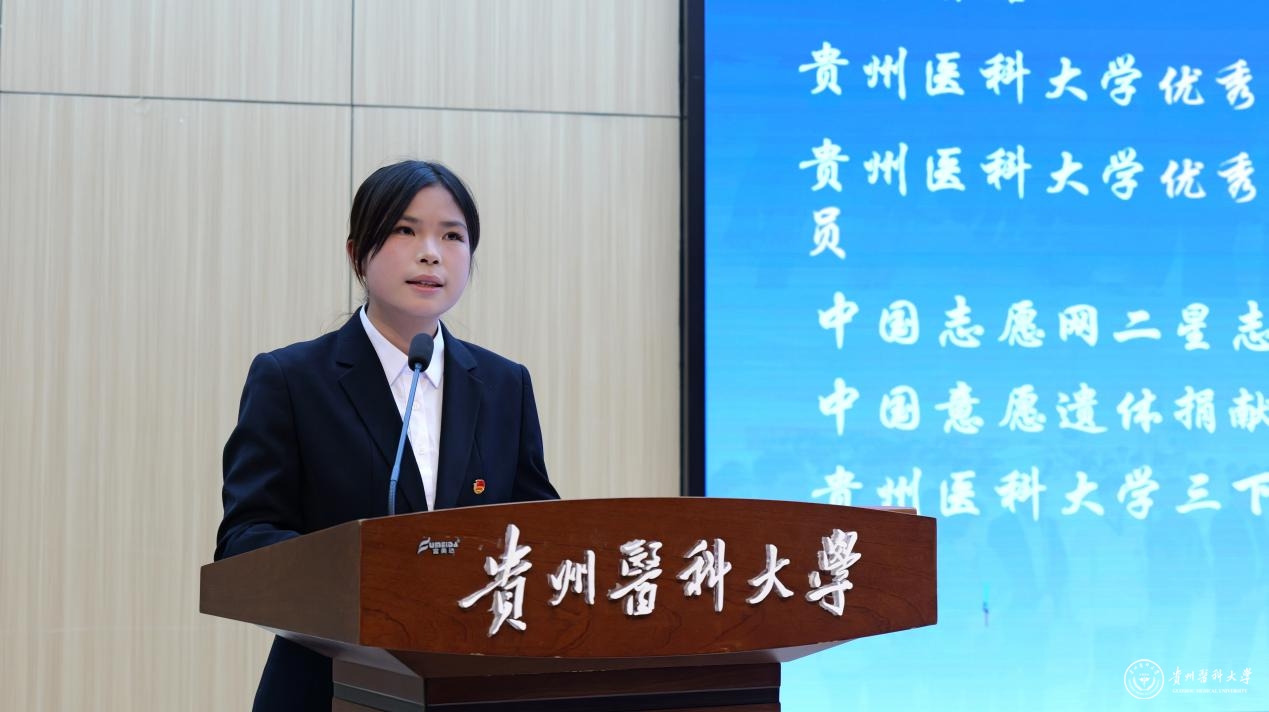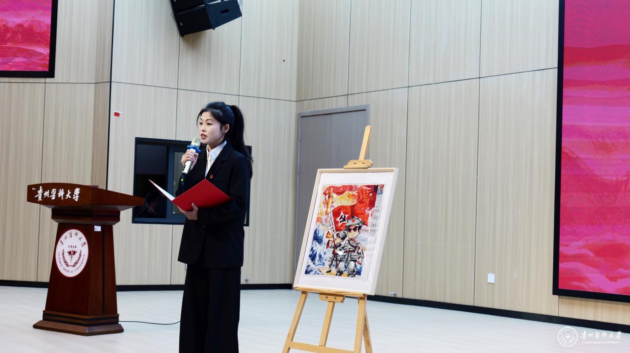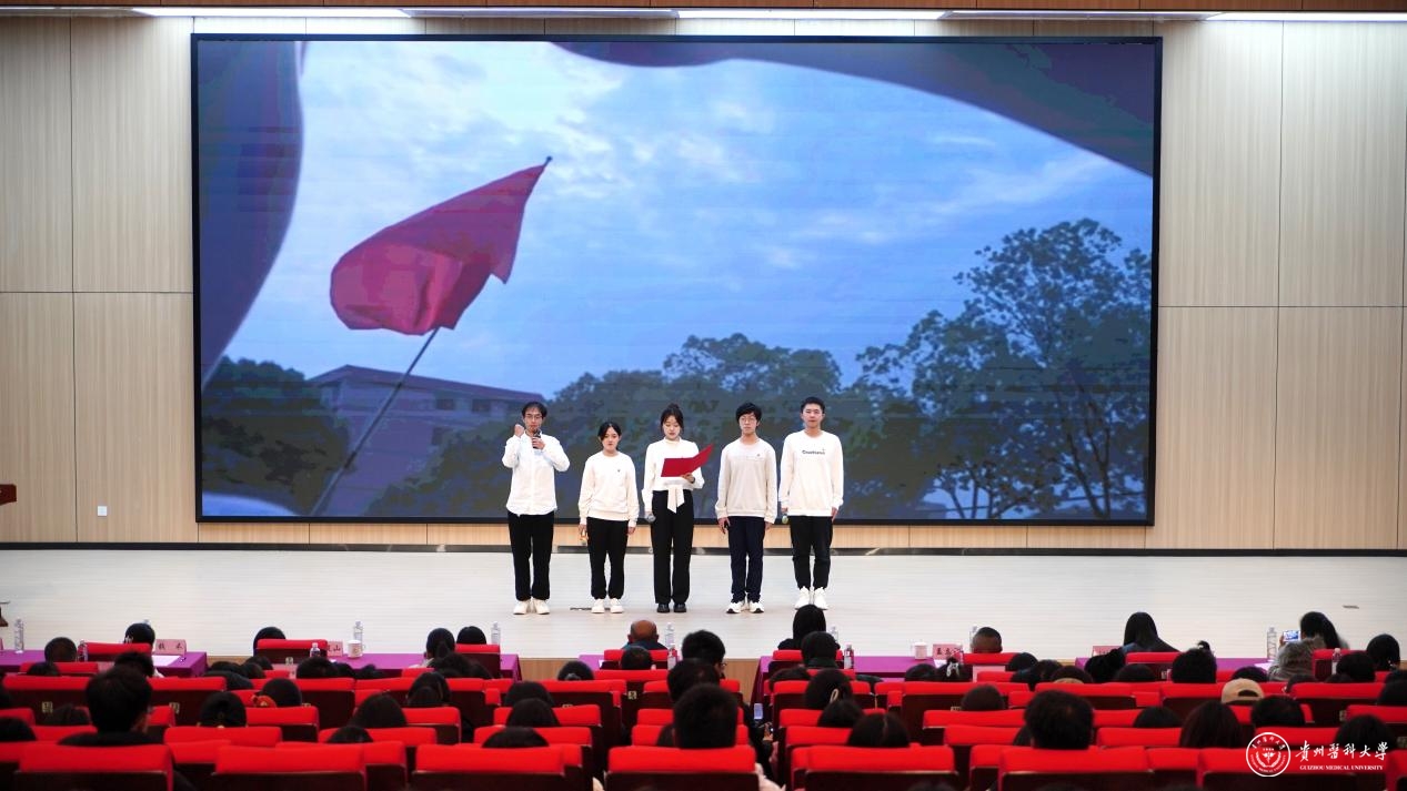 从烽火记忆到健康中国。开场视频《铭记历史,共建民族荣光》瞬间将观众带回烽火连天的岁月,叩击心灵。一首气势磅礴的《保卫黄河》合唱,激荡起深植血脉的民族情怀;2024级临床医学生刘广畅以微团课《黔岭星火照山河——藏在岁月里的反法西斯记忆》,深情讲述了抗战烽火中黔地医疗卫生工作者以仁心仁术救死扶伤、服务民族解放的壮举,让团员青年真切感悟到医学事业与国家命运的血脉相连。