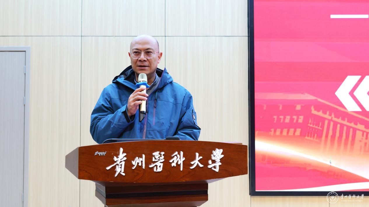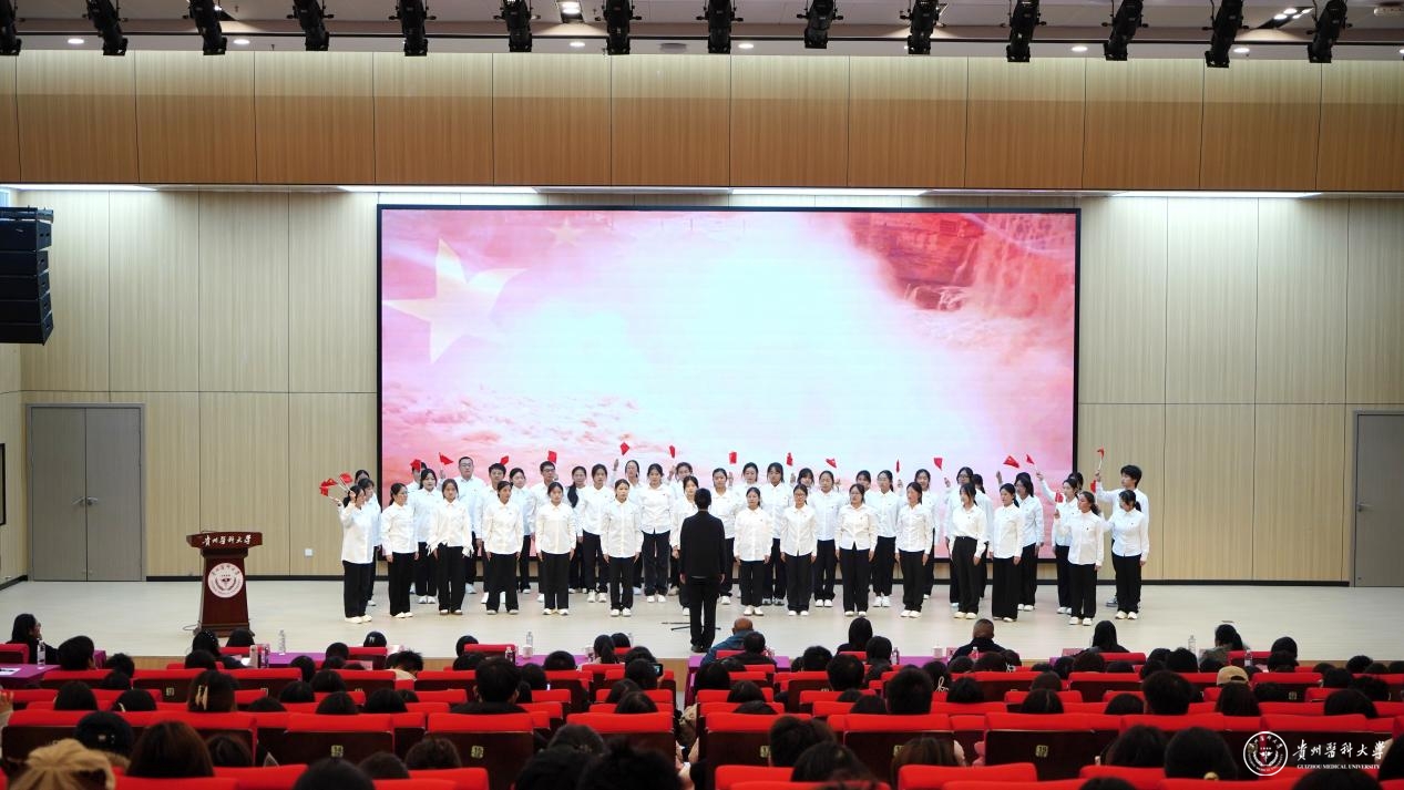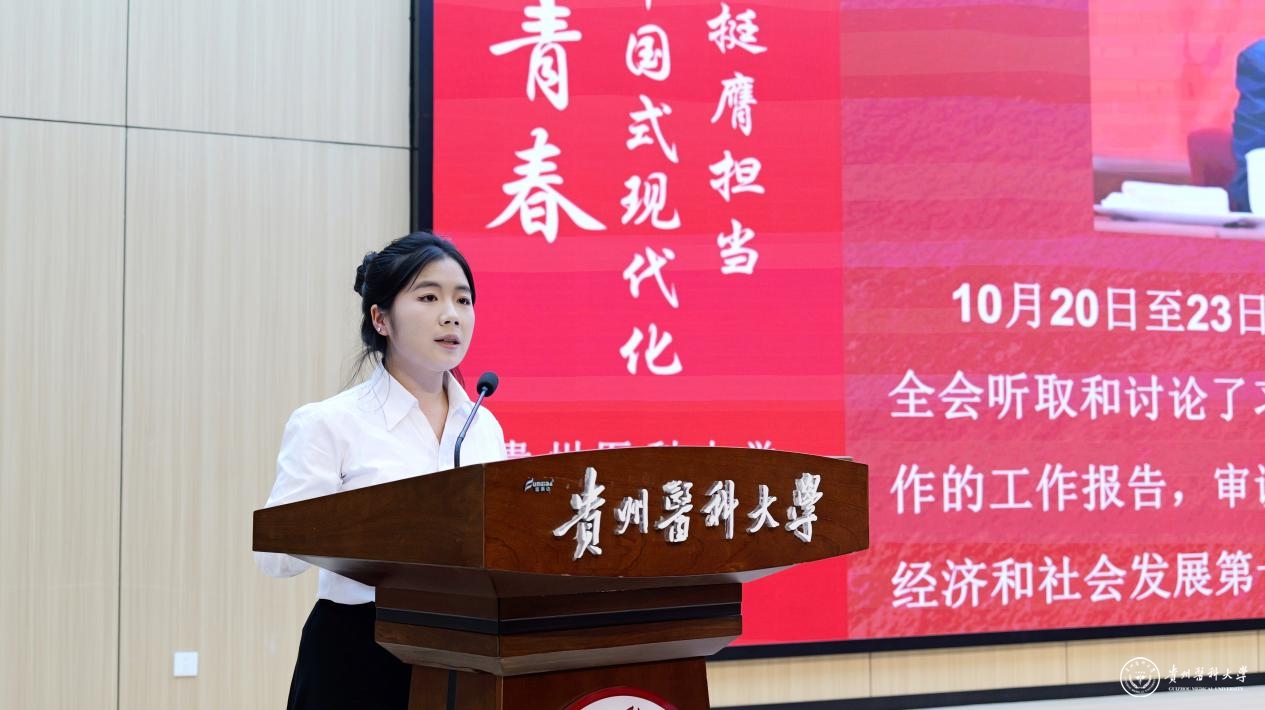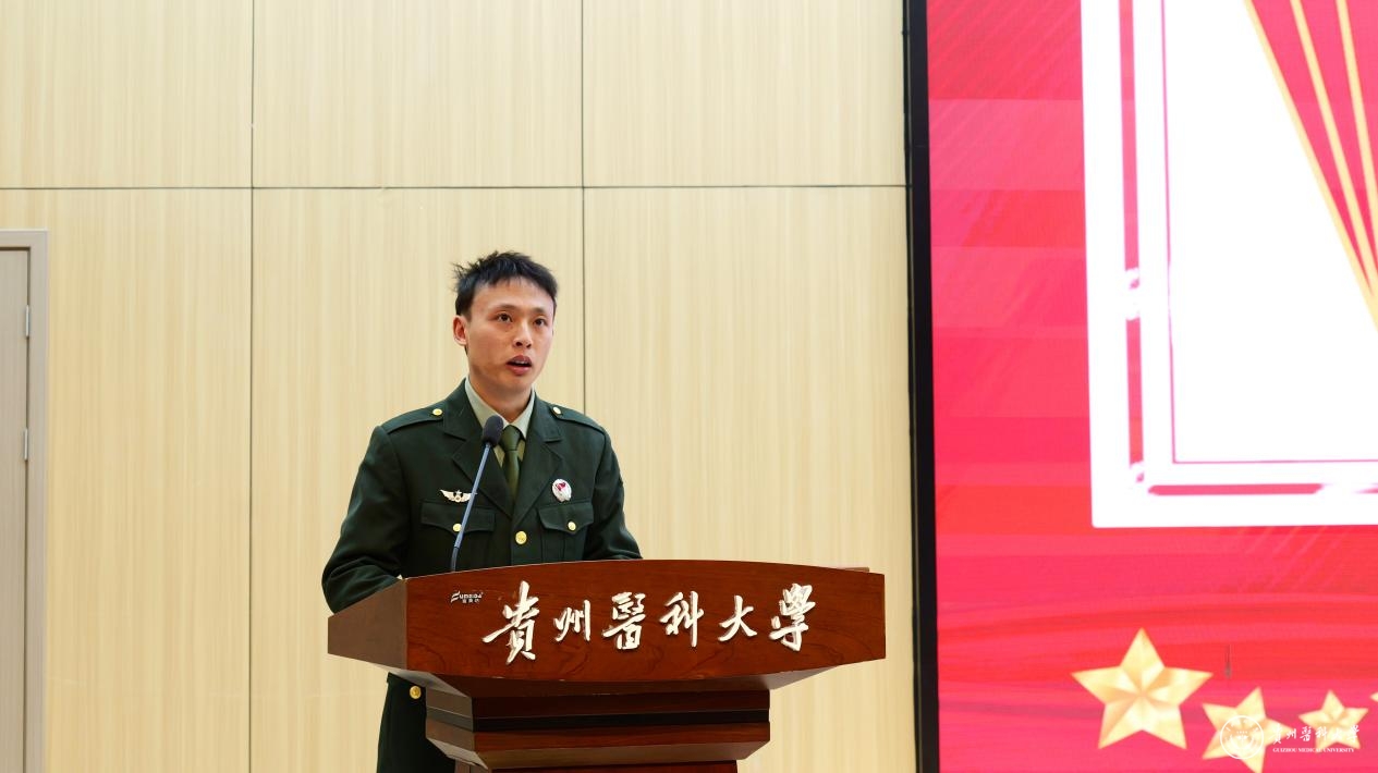 从烽火记忆到健康中国。开场视频《铭记历史,共建民族荣光》瞬间将观众带回烽火连天的岁月,叩击心灵。一首气势磅礴的《保卫黄河》合唱,激荡起深植血脉的民族情怀;2024级临床医学生刘广畅以微团课《黔岭星火照山河——藏在岁月里的反法西斯记忆》,深情讲述了抗战烽火中黔地医疗卫生工作者以仁心仁术救死扶伤、服务民族解放的壮举,让团员青年真切感悟到医学事业与国家命运的血脉相连。