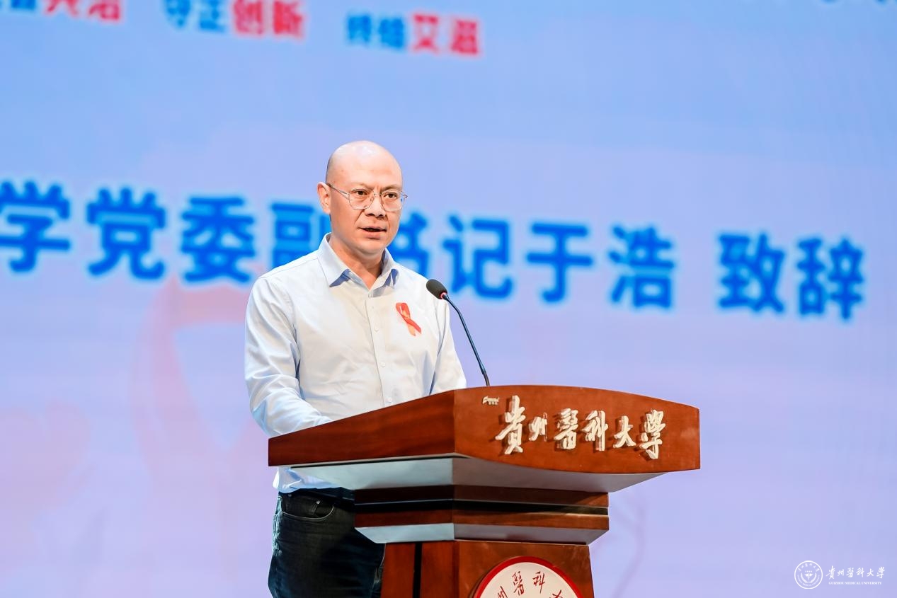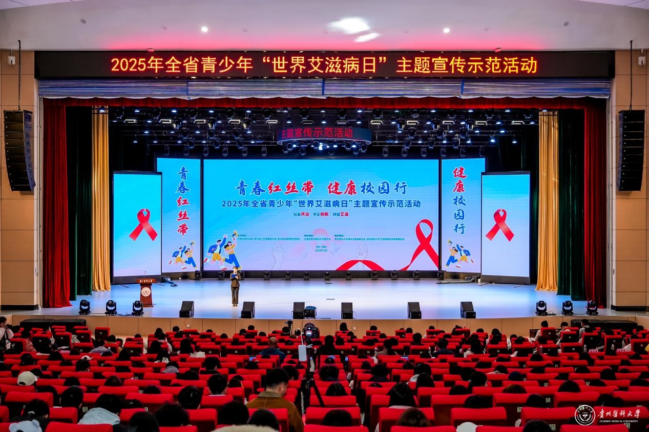 11月28日,在第38个“世界艾滋病日”来临之际,由共青团贵州省委、贵州省卫生健康委员会、贵州省疾病预防控制局联合主办,共青团贵州医科大学委员会承办的2025年全省青少年“世界艾滋病日”主题宣传示范活动在我校大礼堂举行。共青团贵州省委副书记马帅、我校党委副书记于浩、共青团贵州省委权益部部长李玲、贵州省疾病预防控制局监测预警处副处长刘昭兵出席活动,我校团委、校医院及心理健康教育与咨询中心等相关部门负责人参加。2000余名青年学生和志愿者齐聚一堂,共同参与这场防艾科普实践活动。