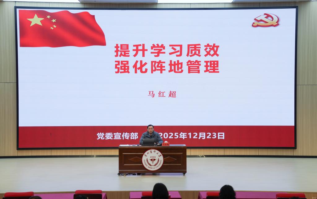党委宣传部(精神文明办公室)理论教育科科长马红超以“提升学习质效 强化阵地管理”为主题,从党委(党组)理论学习中心组学习的内容、形式、要求以及提质增效等方面进行讲解。