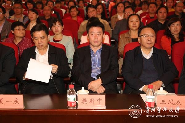 11月7日,在我校全面深入学习十八届五中全会精神之际,十八届中央候补委员、十一届省委委员、贵州省人民政府副省长陈鸣明莅临我校,为我校教职医护员工生作十八届五中全会精神宣讲报告,宣讲会在南校区大礼堂举行。省政府副秘书长樊新中,省教育厅党组书记、省委教育工委书记王凤友,省委组织部副部长、省人力资源和社会保障厅厅长夏一庆出席宣讲会。我校党政领导班子成员、重点实验室厅级领导干部,学校副处级以上干部,重点实验室相关处室主要负责同志,附属医院、第二、三附属医院副处级以上干部,医学人文学院和社科部全体教师,部分教师代表、辅导员代表,学生代表等1300余人参加宣讲报告会。宣讲报告会由我校党委书记林昌虎主持。