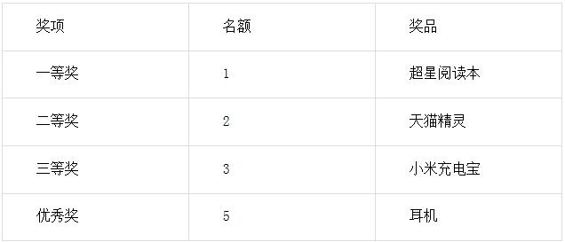 一等奖1人:天猫精灵+有时精装1人本+雨伞
